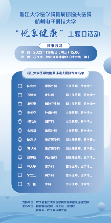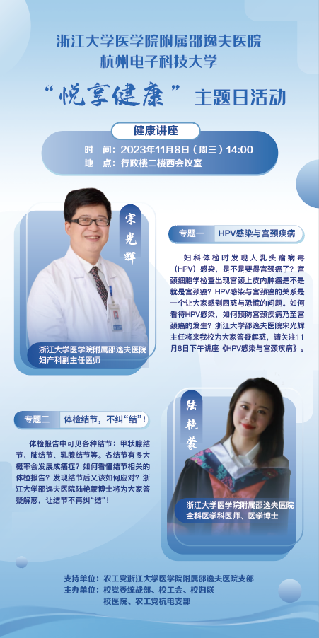 浙江大学医学院附属邵逸夫医院专家提供健康咨询,报名教职工可带着自己的体检报告前往咨询。